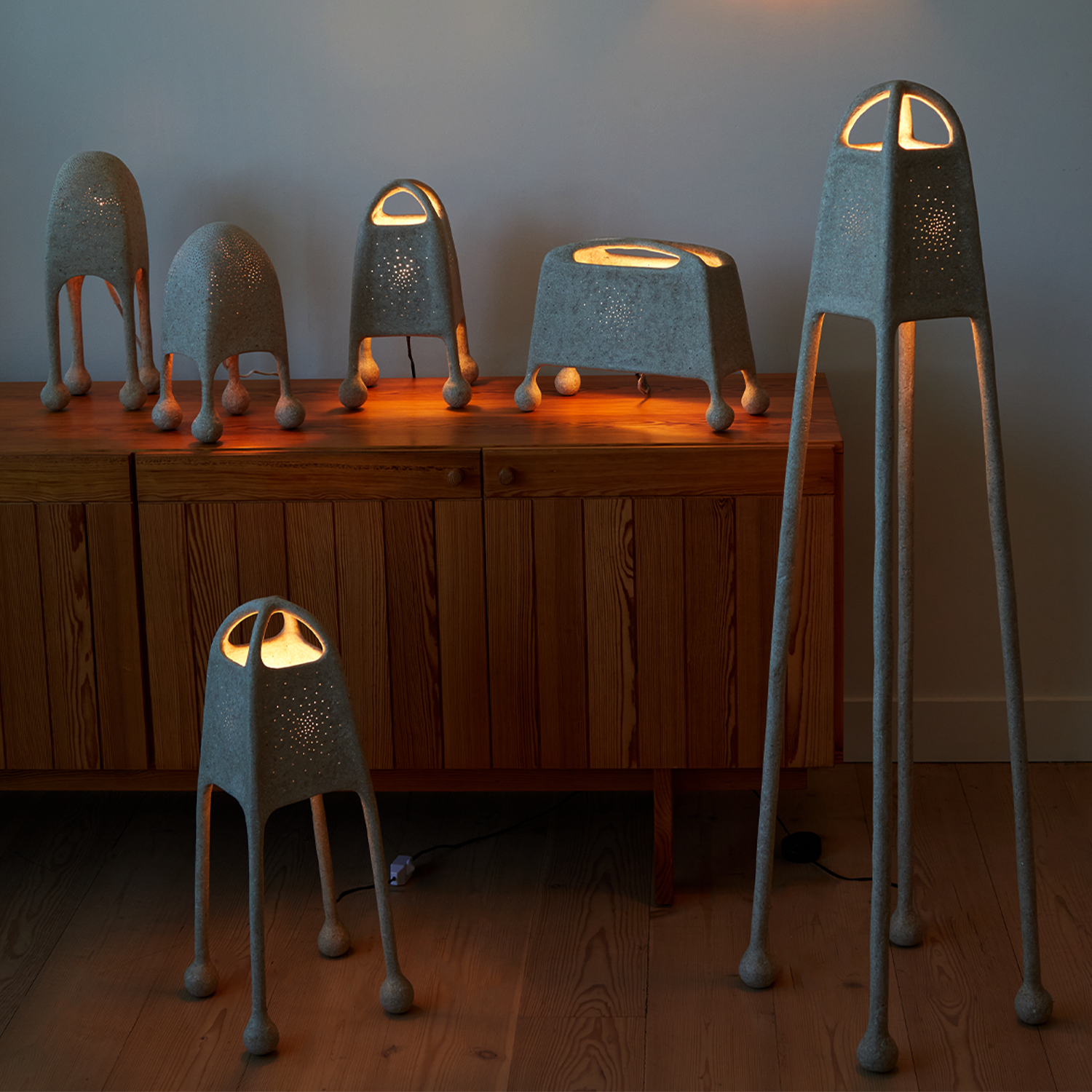 James Cherry designs lighting using complex manipulations of recycled materials. Using his hands, elaborate processes are applied to present intimate symbols of the human experience. After studying sculpture at Bard College, Cherry now lives and works in Los Angeles.
