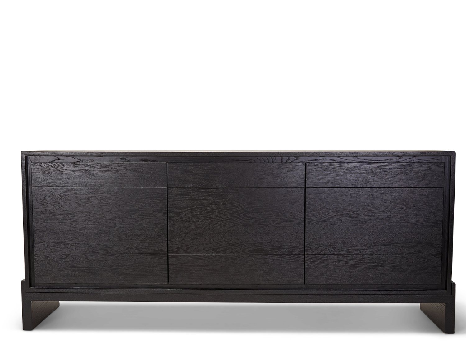 The Platform Cabinet is a three door cabinet with a solid American walnut or white oak front and base. Available with or without horizontal scribe detail.