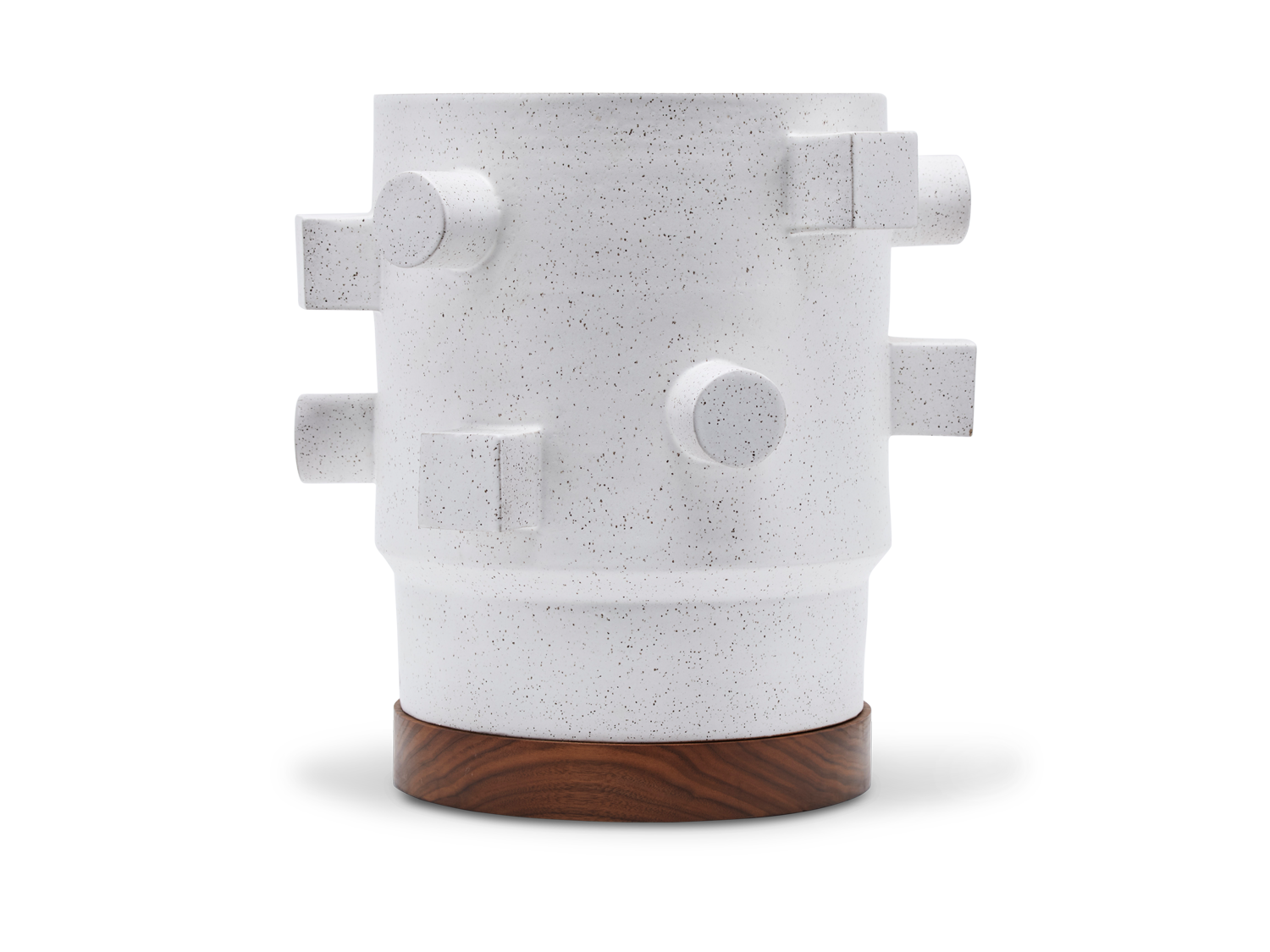 Sculptural ceramic side table with wood base handmade by Natan Moss.