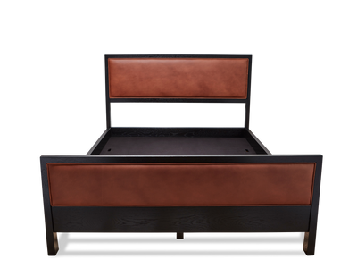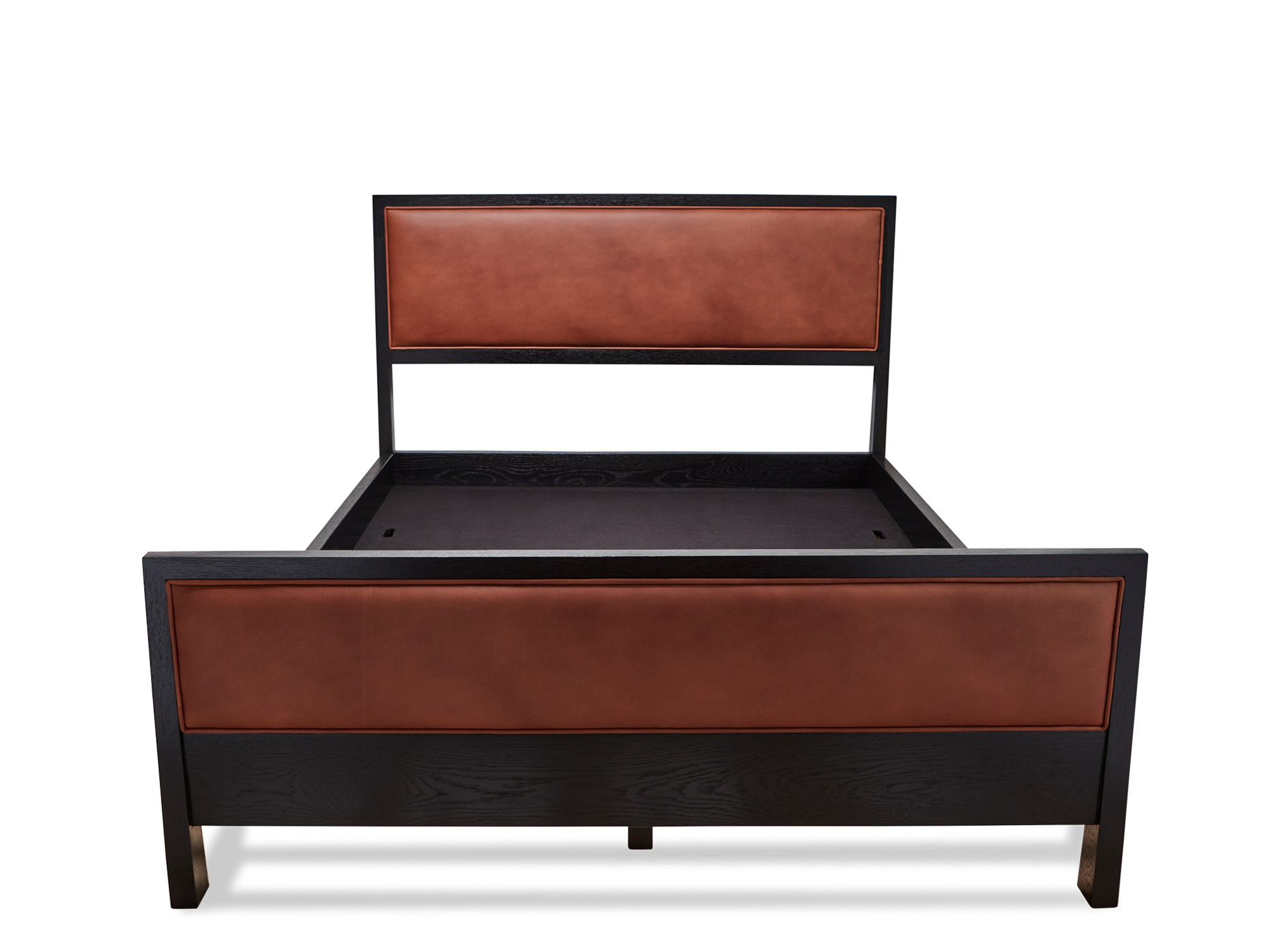 The Auden Bed is a solid wood framed bed that can be made in either American walnut or white oak. The piece features an upholstered headboard and footboard.