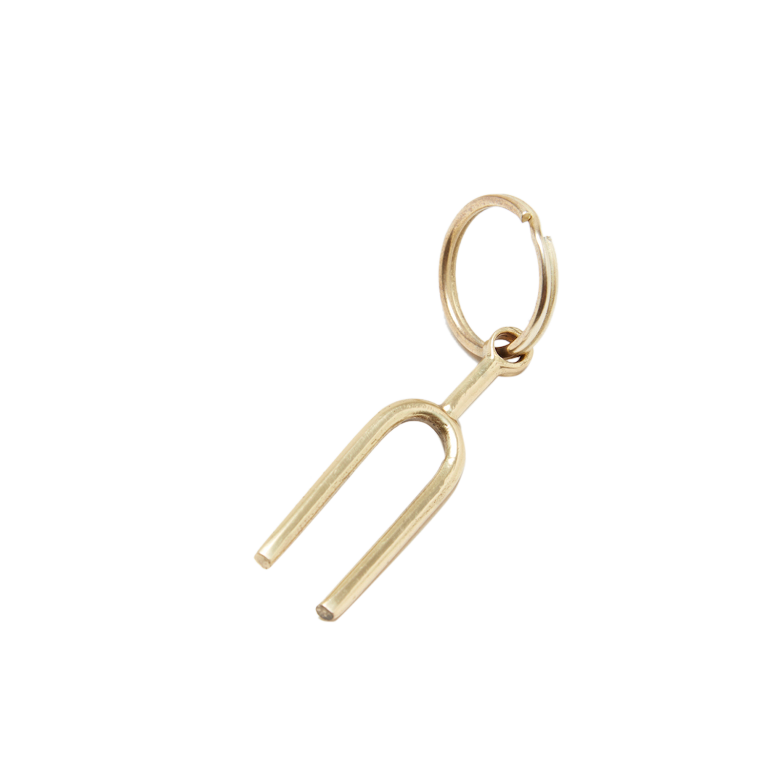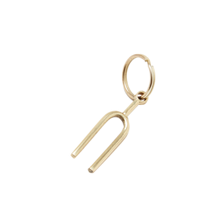 Solid Brass keychain in the shape of a miniature tuning fork by Werkstätte Carl Auböck. Please review lead times and shipping notes in Product Details prior to purchasing.