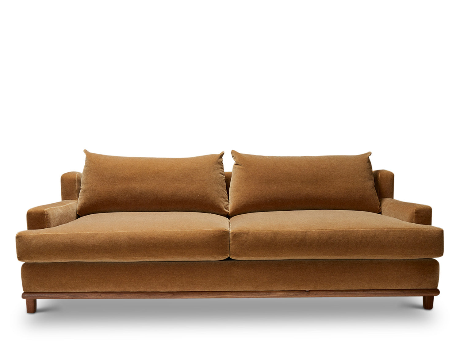 The George Sofa is part of the collaborative collection with interior designer Brian Paquette. The low profile silhouette sits above a sculpted solid wood base.