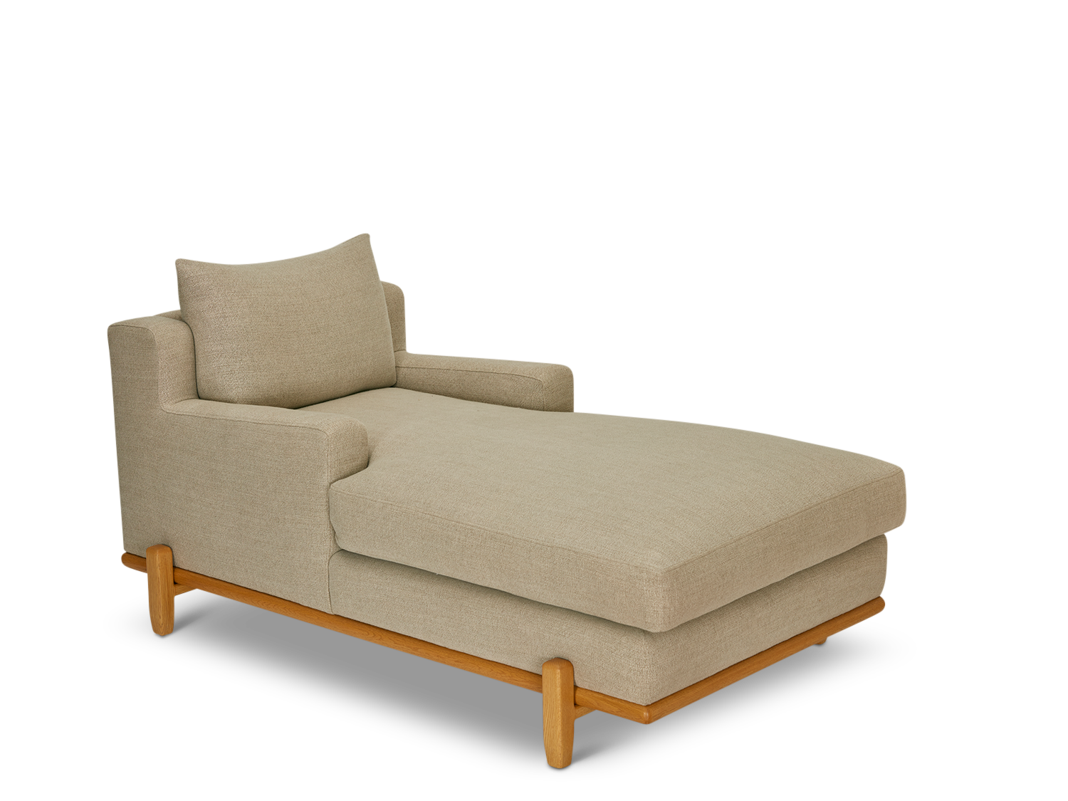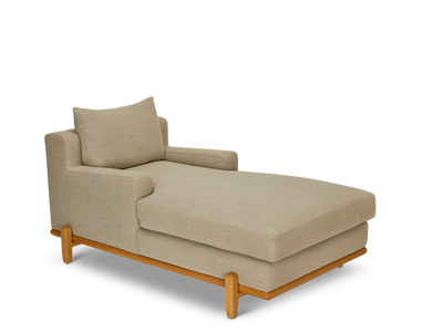 The George Chaise is part of the collaborative collection with interior designer Brian Paquette. The George Chaise is a low-profile, but wide-scale chaise that rests on top of a solid wood base.