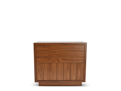 The Oliver Nightstand is part of the collaborative collection with interior designer Brian Paquette and features two drawers with a v-groove detail.