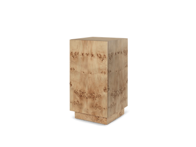 The Burl Side Table has its namesake from the beautifully patterned, FSC™ certified burl wood it is made of. This versatile and sleek piece serves as both a nightstand and a side table, adapting effortlessly to your needs. Its hidden storage space includes an adjustable shelf that can be moved according to the items being stored. The pedestal-like design exudes an elegant expression that enhances the overall aesthetics and ambiance of any space.