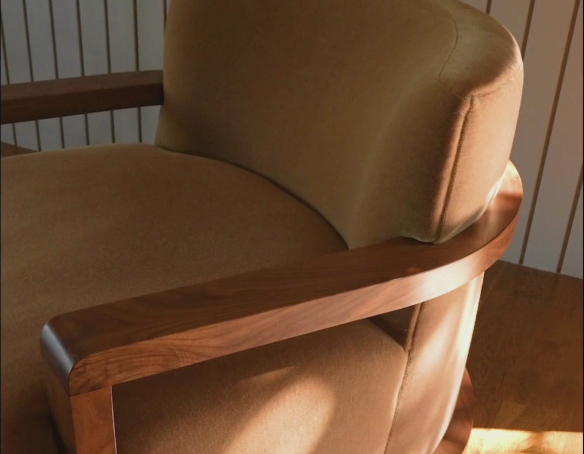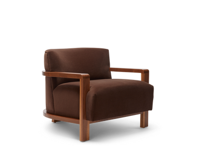 The Carrillo Lounge Chair features a curved solid wood frame and upholstered seating. Availabe with the Carrillo Ottoman.
