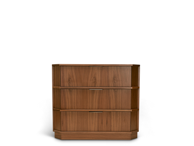 The 3-Drawer Clyde Dresser was inspired by a 1920s streamlined travel trunk. This piece is designed for efficiency and style while introducing a larger storage capacity.