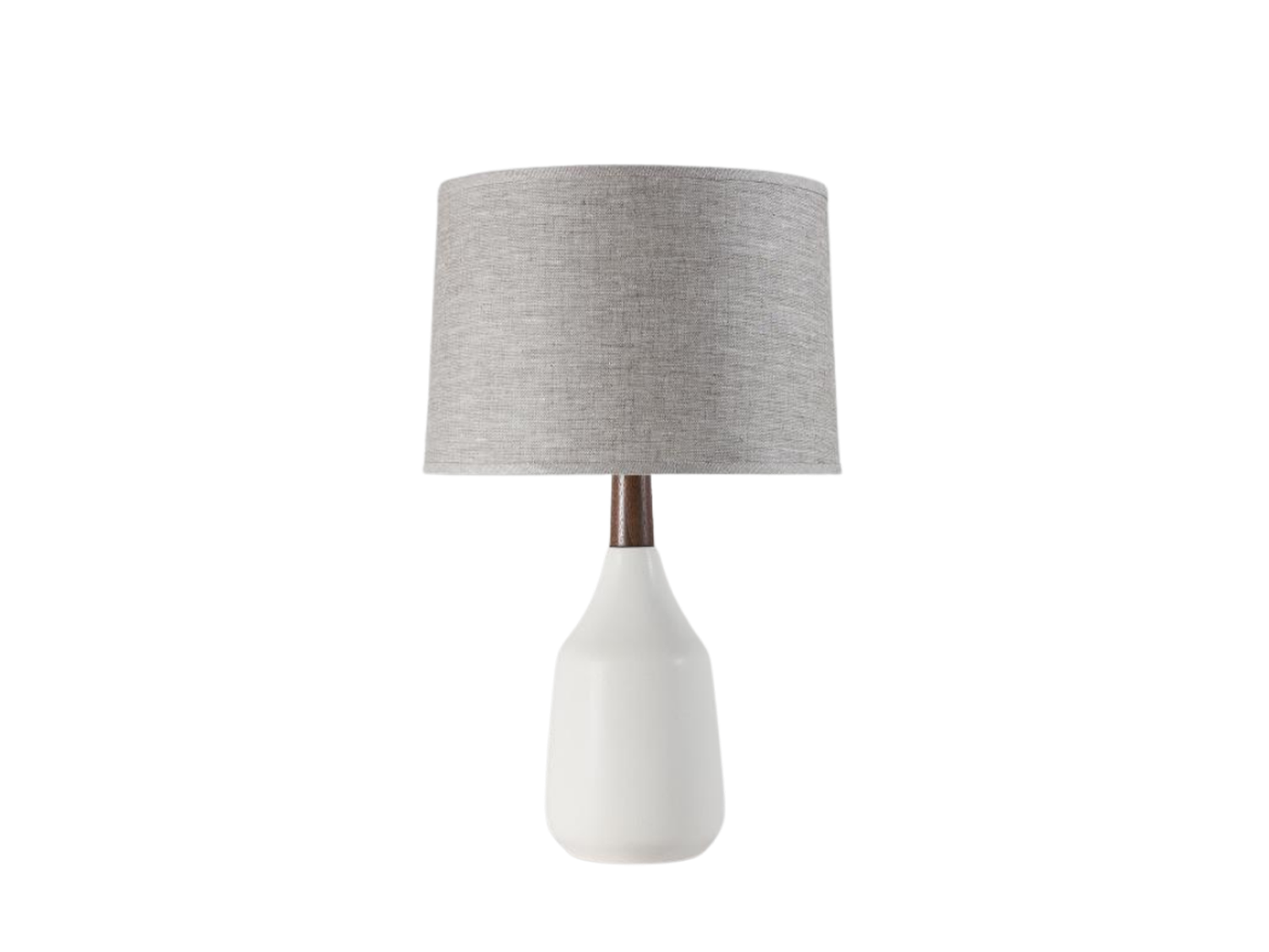 Handcrafted stoneware lamp made in upstate New York by Stone and Sawyer. Please contact showroom for custom glaze options. Images feature satin brass metal, walnut wood, and natural linen shade. Please review lead times and shipping notes in Product Details prior to purchasing.