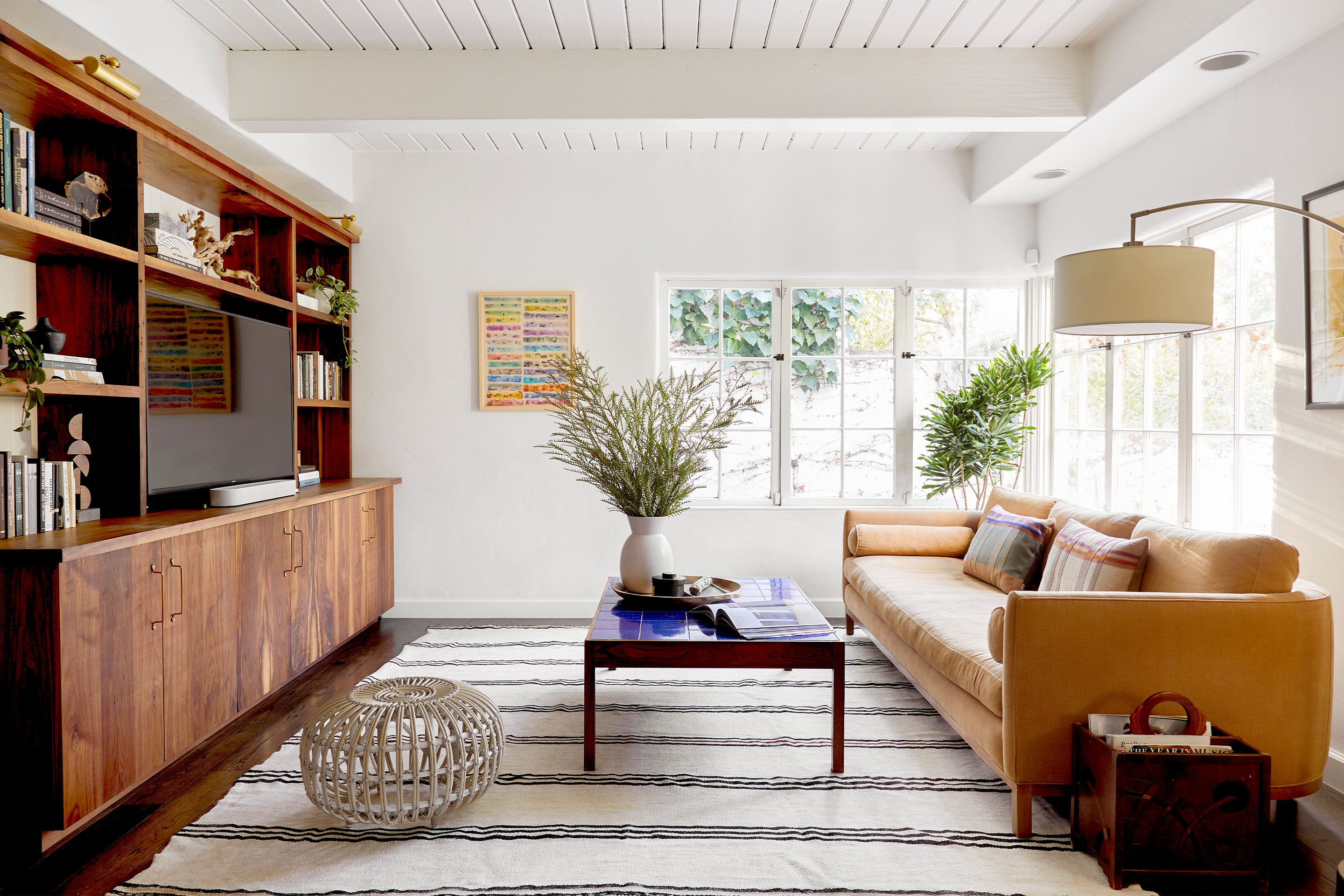 The Curved Back Sofa is a tuxedo style sofa with curved corners and features a single down-wrapped, seat cushion with 3 down-wrapped, removable back cushions and two bolsters. The base can be made in American walnut, white oak or metal. Also available as a sectional.