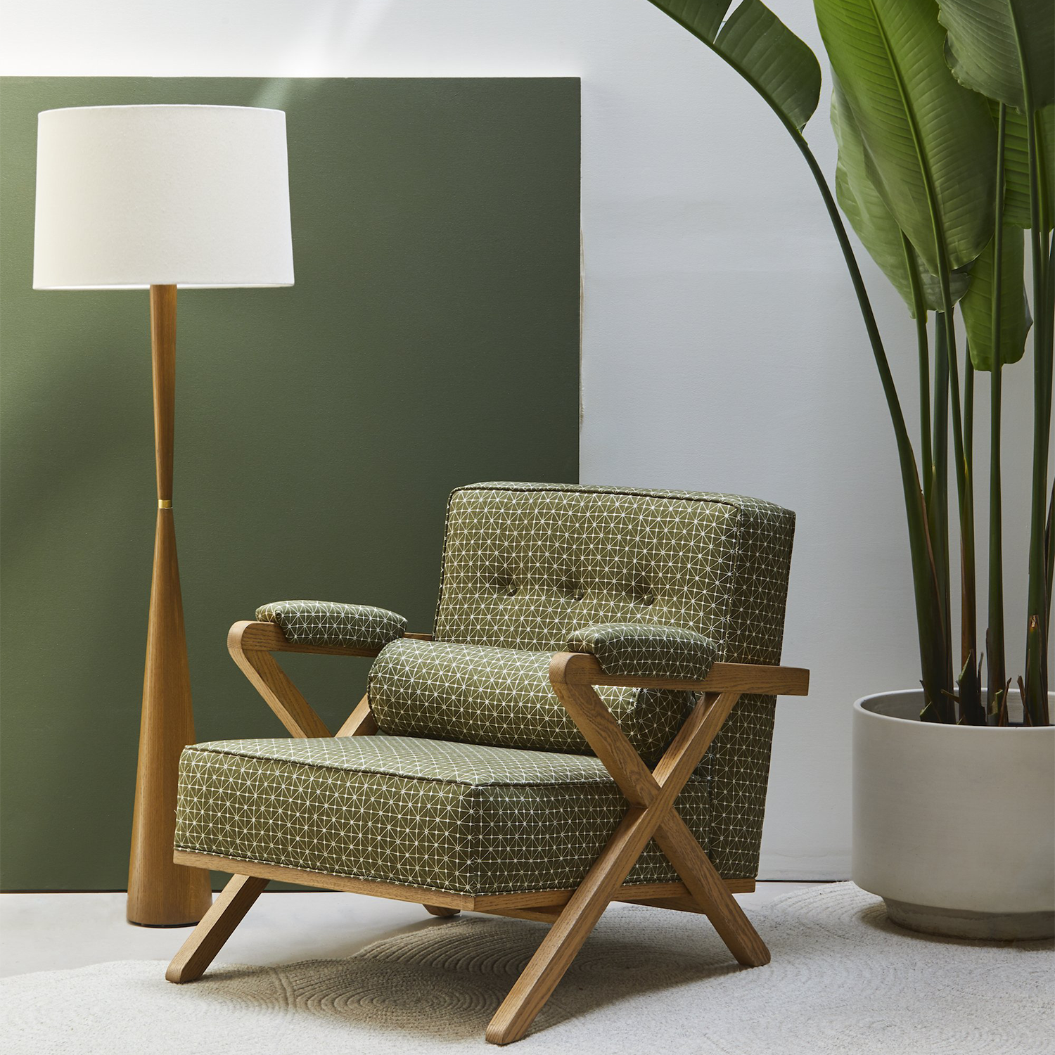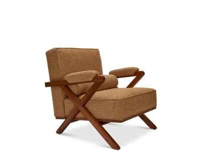 The Dillon Chair has a solid wood frame inspired by California Modernist Paul Laszlo. The cushions are boxed with a piping detail and available with or without buttons on the backrest. Available with the Dillon Ottoman.