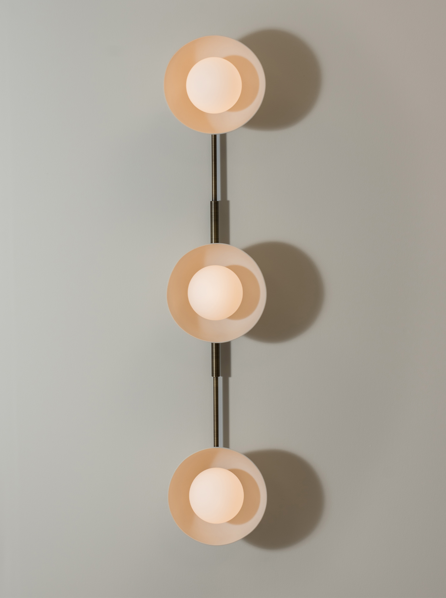 With the organic beauty of glazed terracotta paired with precision-machined brass, the Dixon Triple Sconce is a refined, modern solution for places that need linear lighting. As part of the Dixon family of fixtures, the step-down tubing mimics the growth on flower stems. Can be installed horizontally or vertically.
