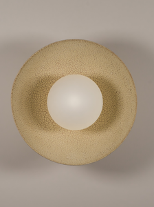 This minimal, modern wall sconce displays the beauty of glazed terracotta. Glazed in the finish of your choice, each piece of terracotta comes out of the kiln with incredible depth and personality. Paired with precision-machined, artisan-finished brass and a handmade glass diffuser, it elevates the idea of “perfectly imperfect”.