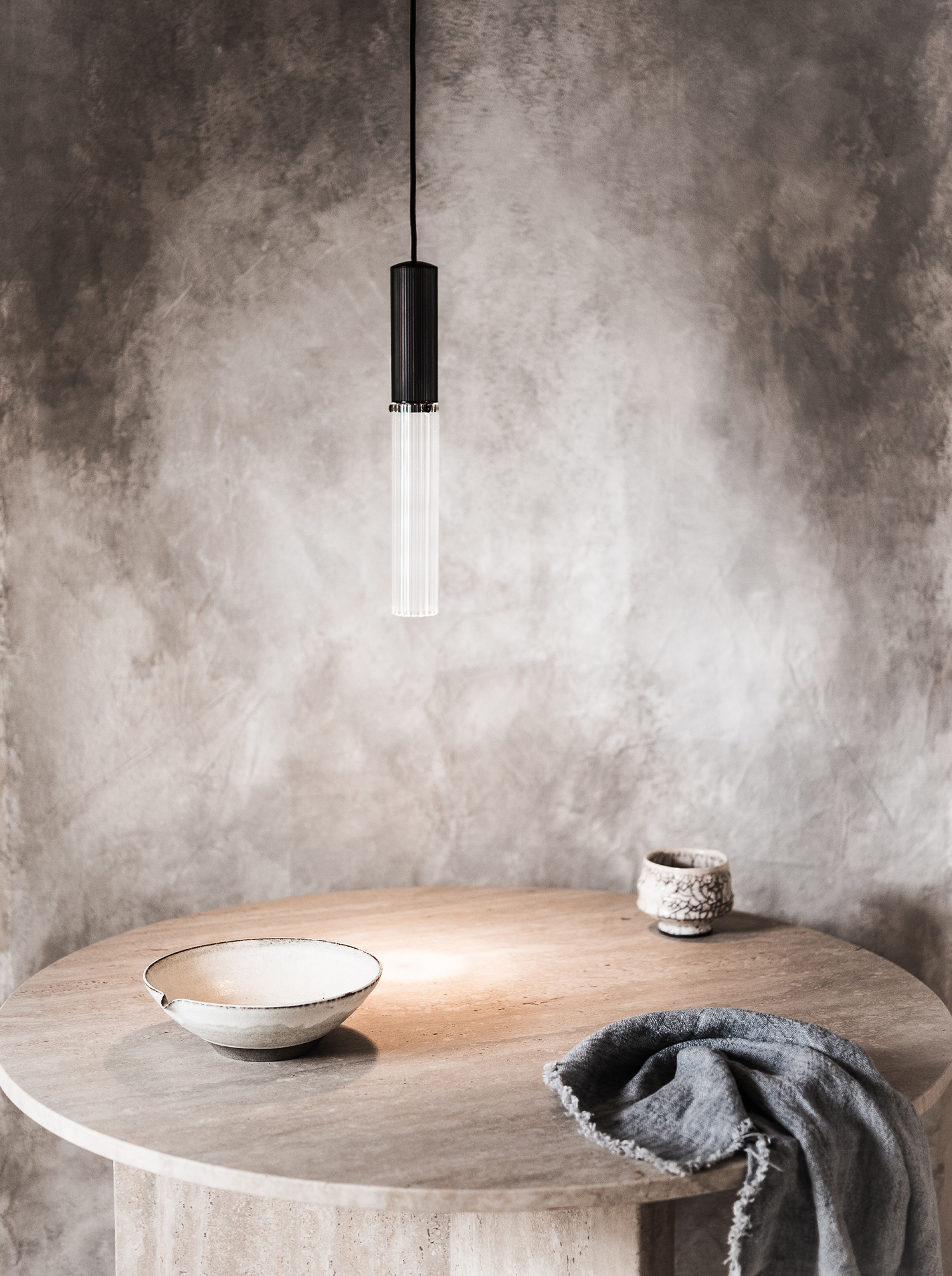 The Flume 50 Pendant merges modern style with Art Deco influences, creating a sculptural form that plays with verticality and light. Its clean lines and warm glow bring an elegance to any space.