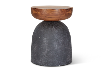 Sculptural side table with wood tabletop, handmade by Natan Moss.