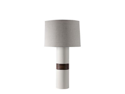 Handcrafted stoneware lamp made in upstate New York by Stone and Sawyer. Please contact showroom for custom glaze options. Images feature satin brass metal, walnut wood, and natural linen shade. Please review lead times and shipping notes in Product Details prior to purchasing.