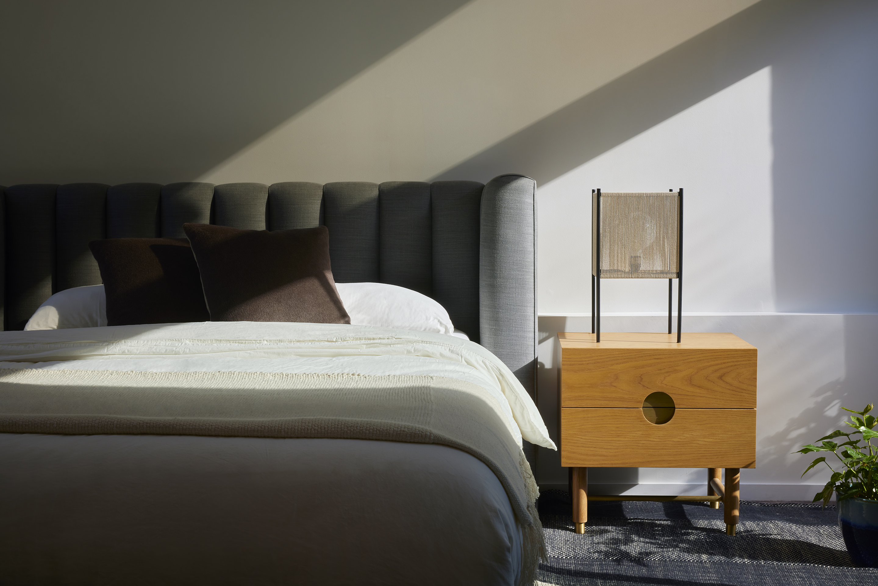 The Isherwood Headboard is channel tufted with wings on both sides.