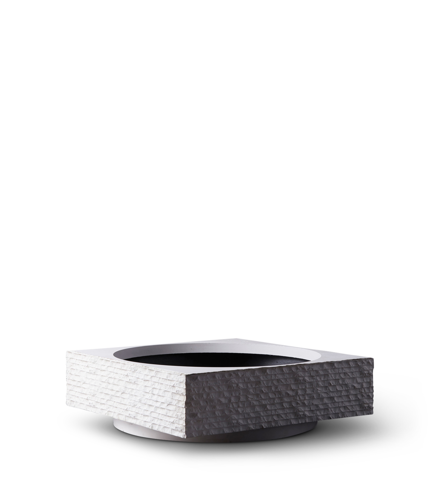 JANUS, the epitome of duality within our collection, is named after the Roman god of transitions. This planter seamlessly embodies the concept of two-faced duality. The JANUS can be configured as a low-profile accent, elegantly hugging the ground, or it can stretch to impressive heights, accommodating full-sized trees. The chiseled texture can be placed both vertically and horizontally, accentuating its dual nature and offering maximum versatility.