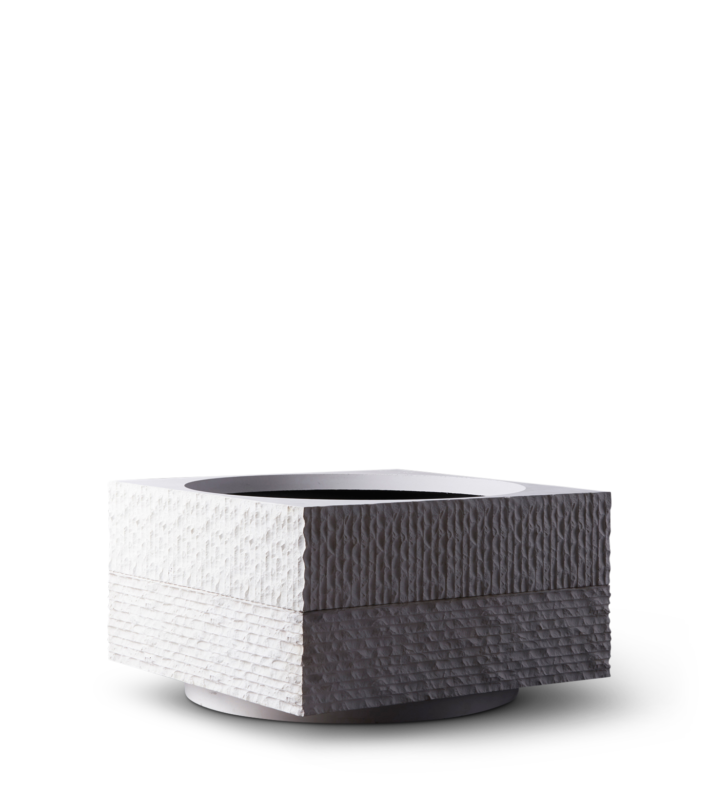 JANUS, the epitome of duality within our collection, is named after the Roman god of transitions. This planter seamlessly embodies the concept of two-faced duality. The JANUS can be configured as a low-profile accent, elegantly hugging the ground, or it can stretch to impressive heights, accommodating full-sized trees. The chiseled texture can be placed both vertically and horizontally, accentuating its dual nature and offering maximum versatility.
