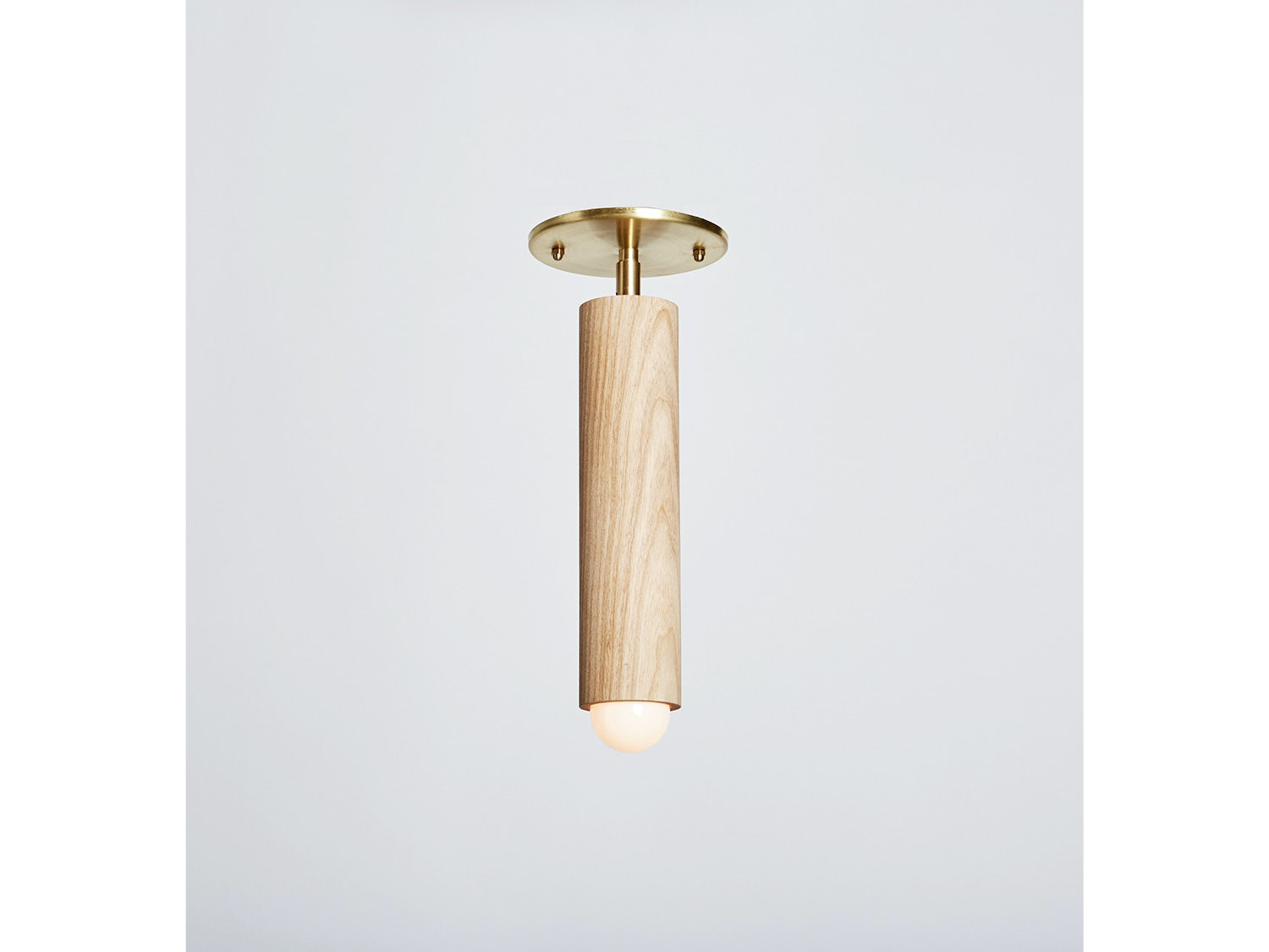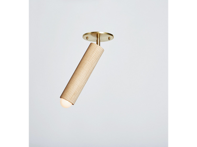 The Lodge Flush Mount is composed of a singular wooden column beneath a circular metal canopy. The adaptable fixture can pivot to nearly any desired angle, for a soft directional light. Please review lead times and shipping notes in Product Details prior to purchasing.