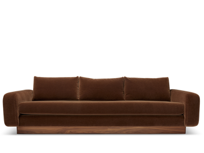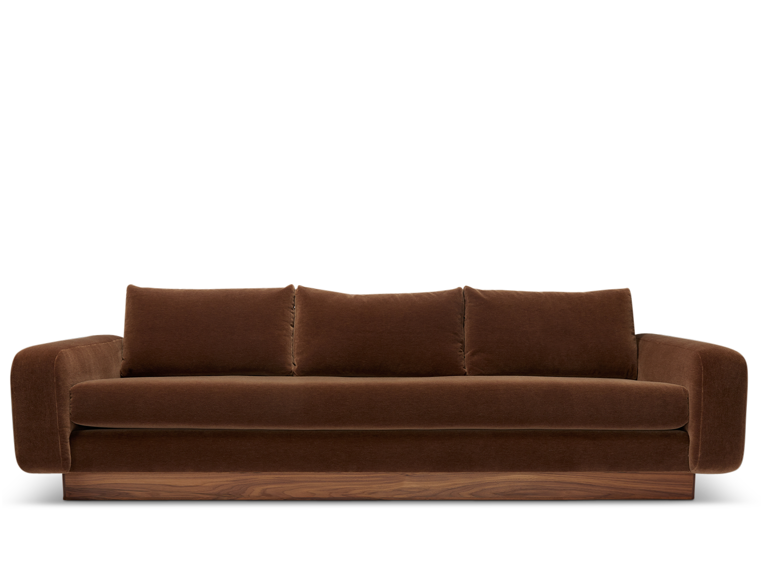 The Mesa Sofa is a fully upholstered sofa that features a walnut or oak plinth base. Also available as an L Shaped Sectional or a Sectional with Chaise.