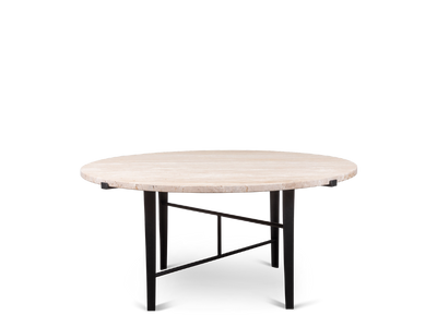 The Montrose Coffee Table is an open-grain honed travertine coffee table with a powder coated steel base. Suitable for indoor and outdoor use.