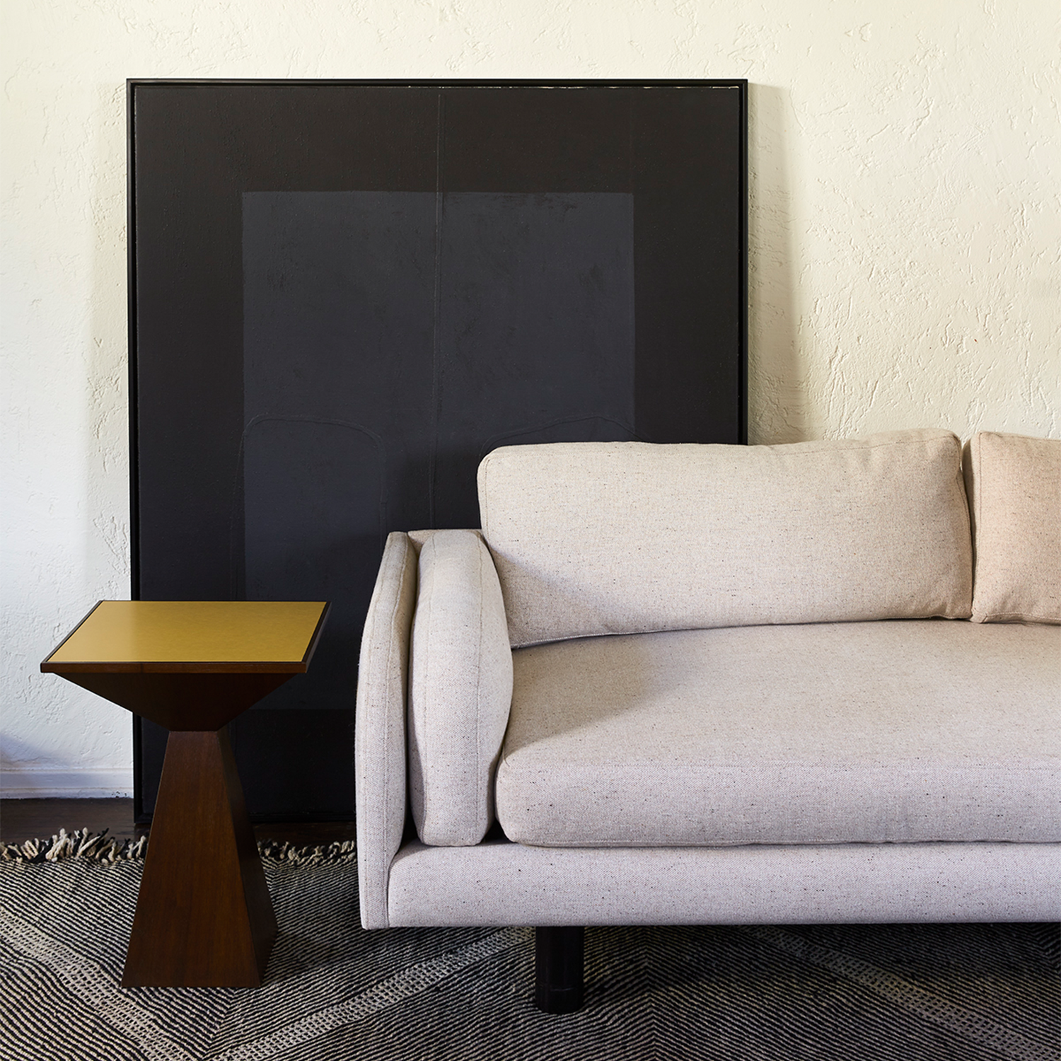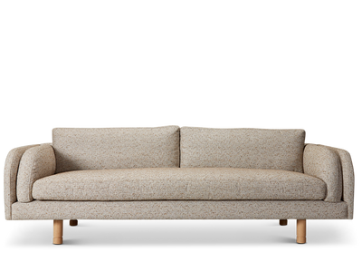 The Moreno Sofa sits deep and spacious with a beautifully curved silhouette. The sofa features a bench seat and side cushions that mimic the curvature of the arms. The legs have an incised detail and are made of solid American walnut or white oak. Also available as a sectional. View complete Moreno Collection.