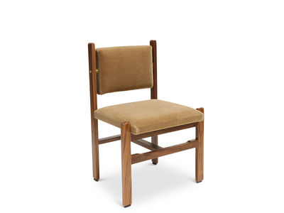 The Morro Dining Side Chair - Fully Upholstered is made from a solid American walnut or white oak frame and features an upholstered back cushion and seat. Also available with an upholstered back cushion & leather sling seat. Inspired by the articulated connections of Bauhaus Architects/Designers.