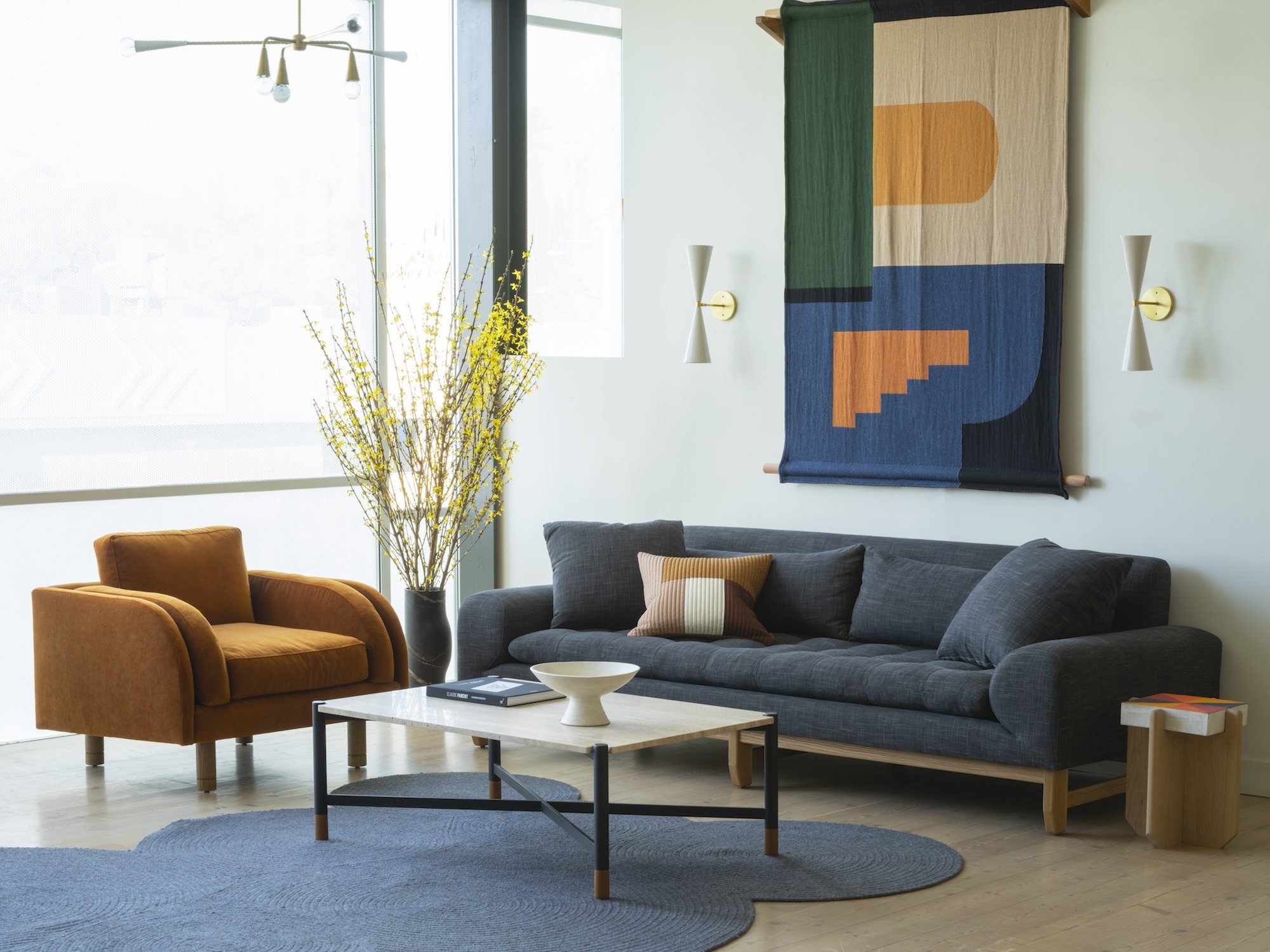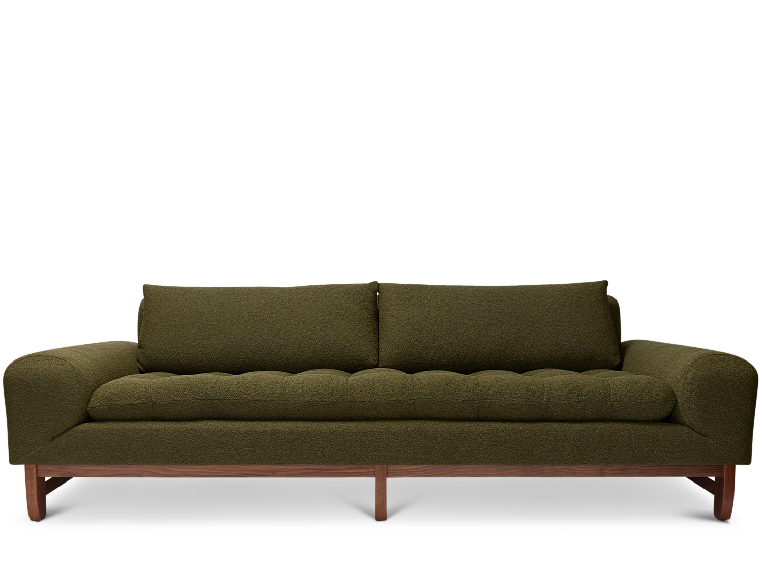 The Morro Sofa is our deepest and largest scaled sofa featuring a biscuit tufted seat, loose back cushions and a geometrically sculpted base. Also available as a sectional.