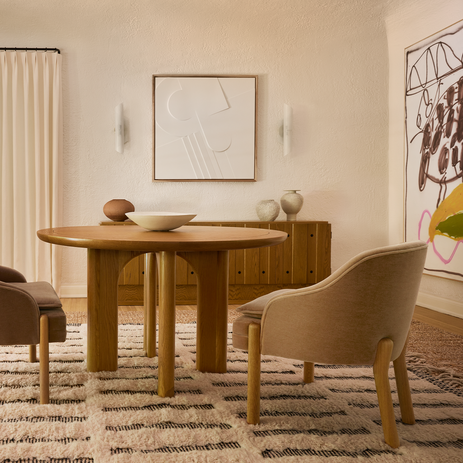 The Newton Dining Table features a base with intersecting arches that bounce light and shadow and remind us of train bridges built at the turn of the century. View complete DISC Interiors x LF Collection.