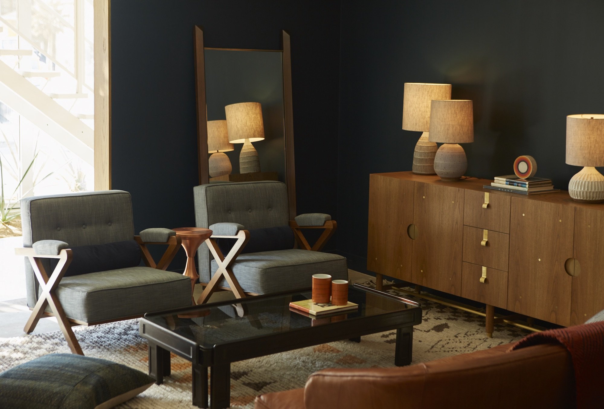 The Niguel Cabinet features three central drawers. On the left is a single compartment with one adjustable shelf.