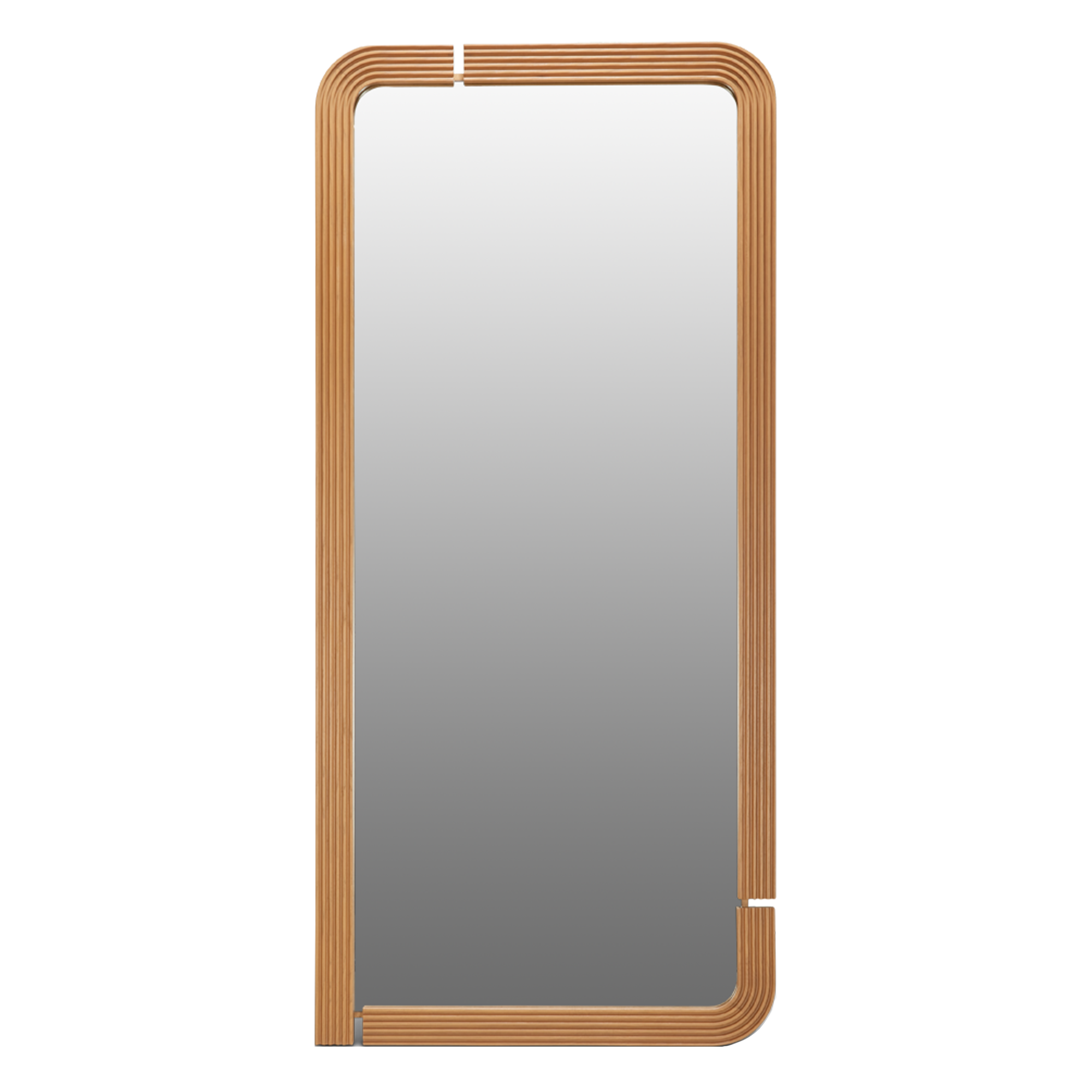 The Ojai Floor Mirror features a solid frame that is laser cut with a groove detail.