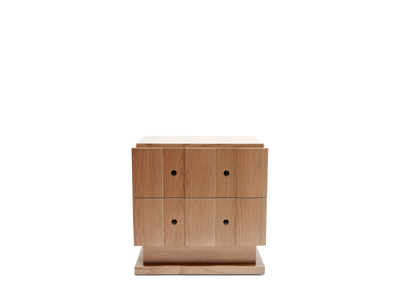 The Ojai Nightstand features board and batten doors with iron details and two drawers. Also available in Large. Inspired by the refined simplicity and subtle detailing of early 20th century Swedish furniture designer Axel Einar Hjorth.