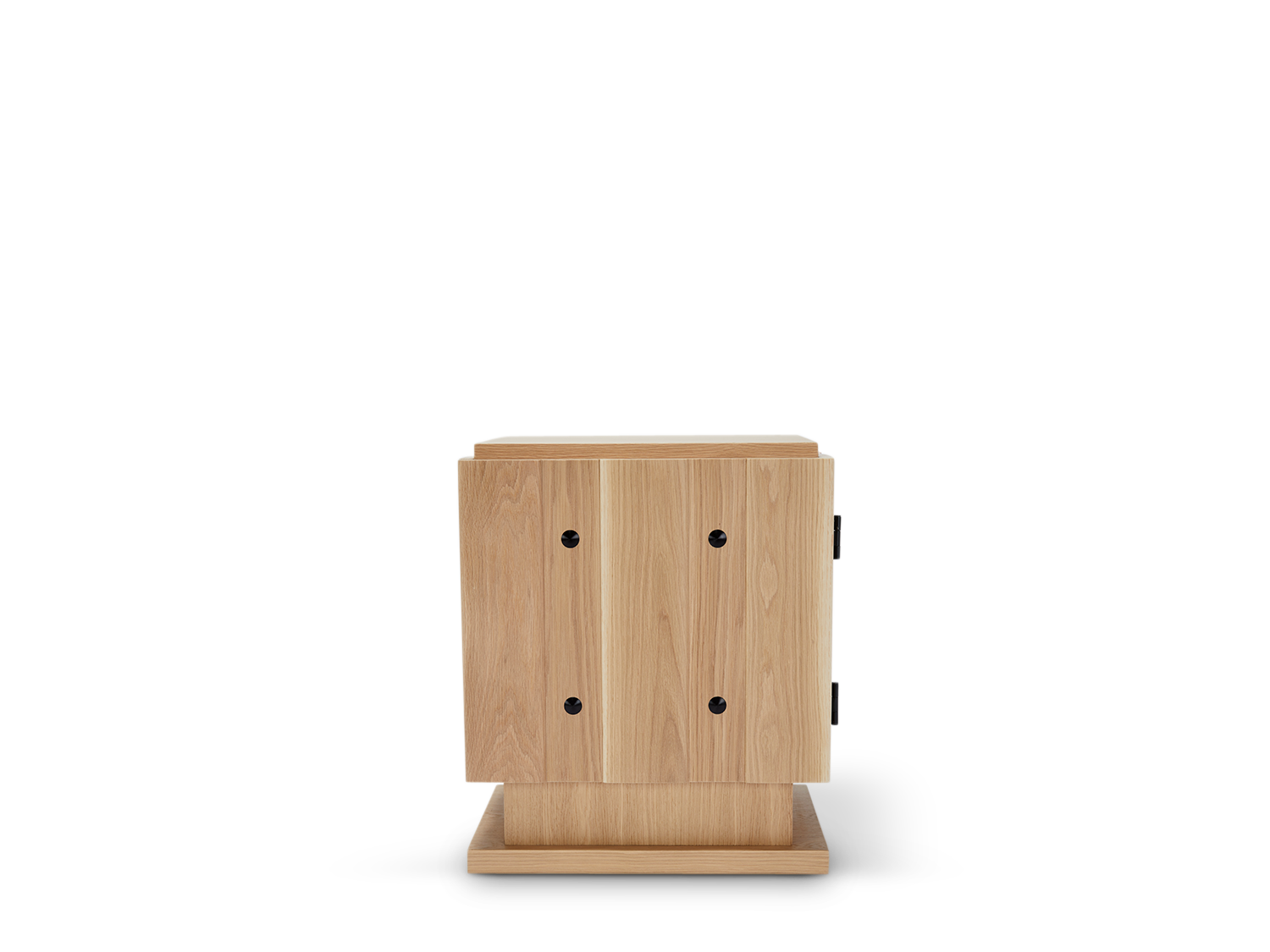 The Ojai Daystand features a board and batten door with iron details and an adjustable interior shelf. The door orientation can be specified as left or right opening.
