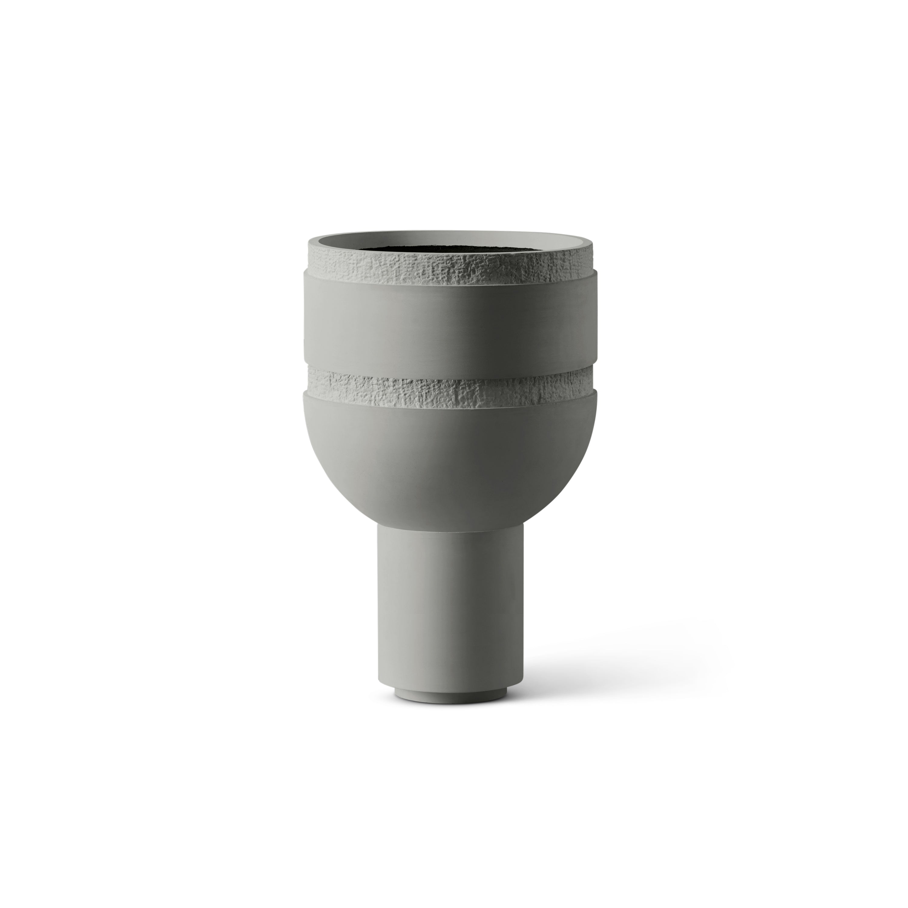 A pure cylindrical column culminates in a half sphere, distilling ORION into a minimalist form—simple yet versatile. Belts of hammered stone can be added paying homage to the celestial body of Greek legend, creating a connection with the mythic past. Additional segments slot into the previous, allowing the planter to change height and accommodate a variety of plant sizes.