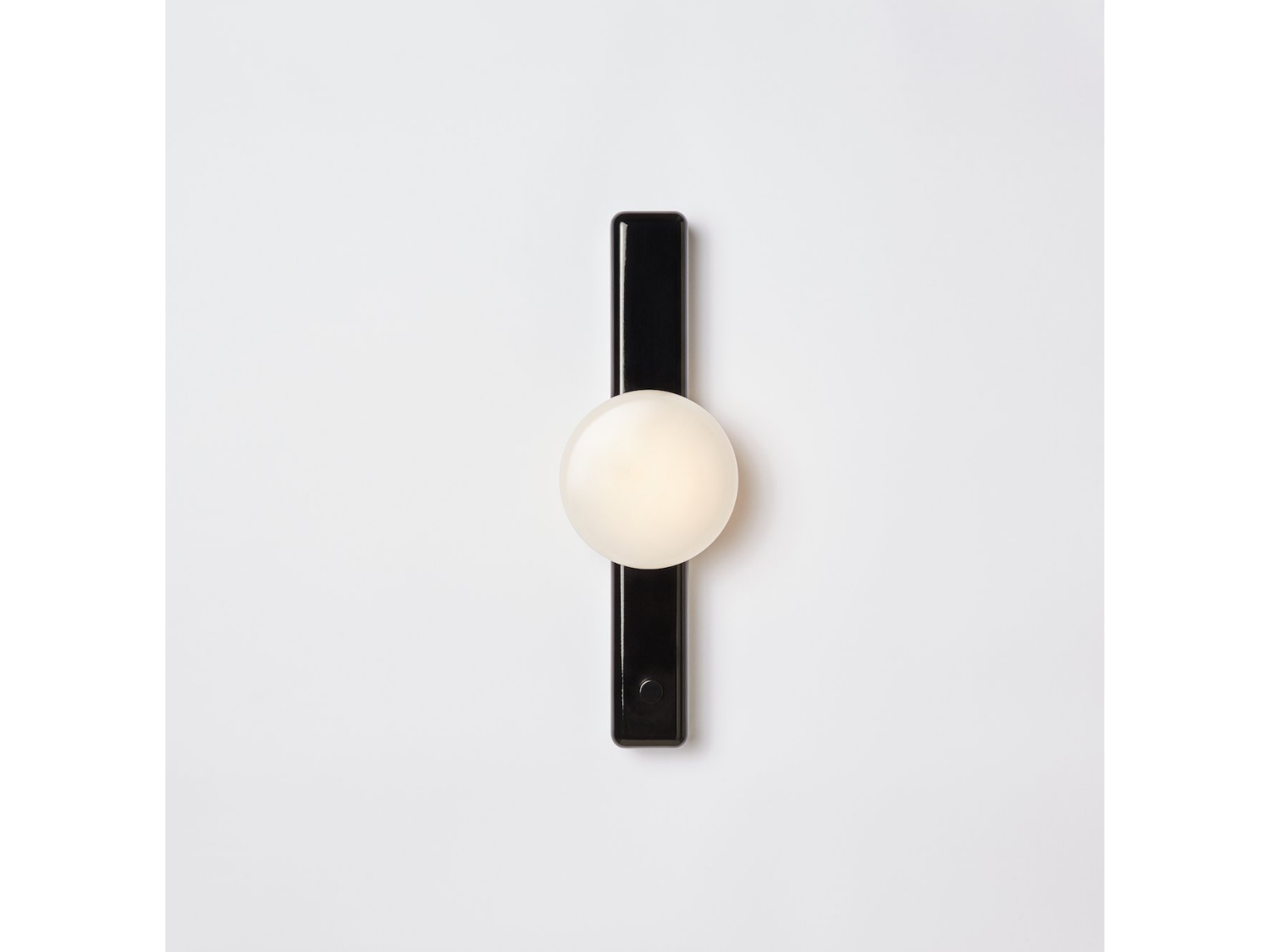 The Park II incorporates a domed hand-blown milk glass shade atop a slender enameled base. Referencing porcelain fixtures of the pre-war period, the iconic sconce has an integrated dimmer knob, for a tactile experience.