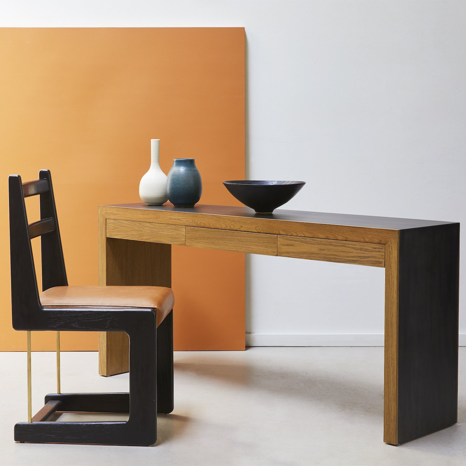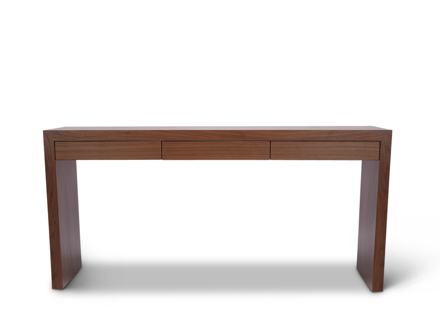 The Parkman Console features a classic waterfall design. Available with wood or cork top and sides.