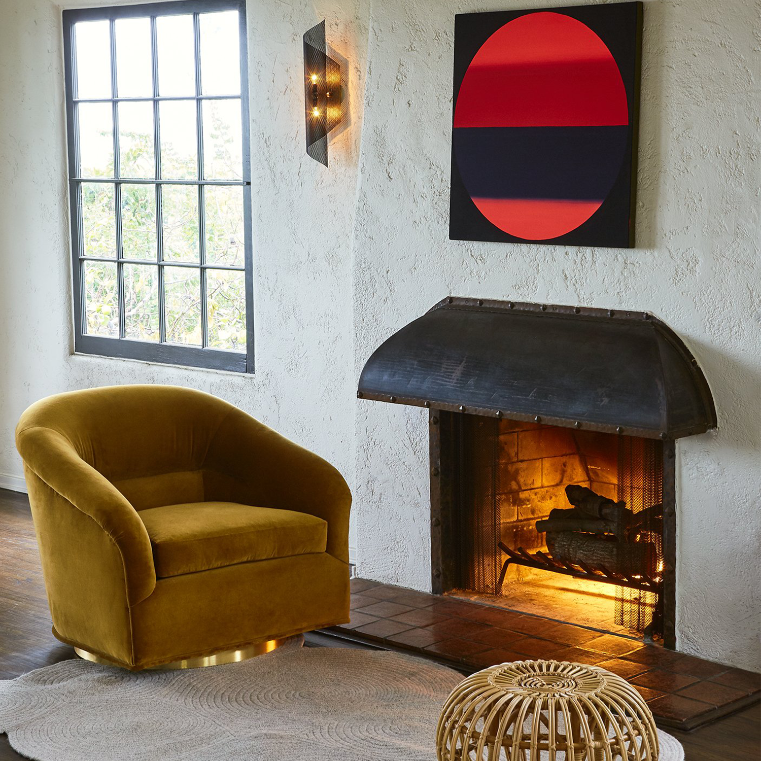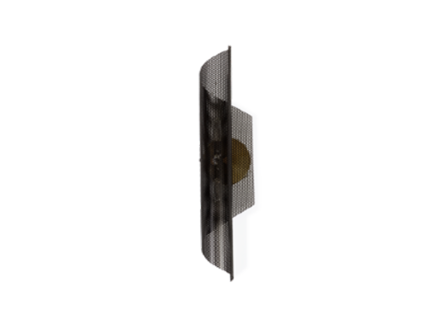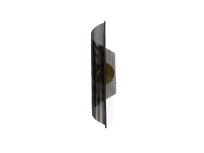 The Rolled Perforated Sconce features a single sheet of rolled perforated steel with a rounded brass backplate.