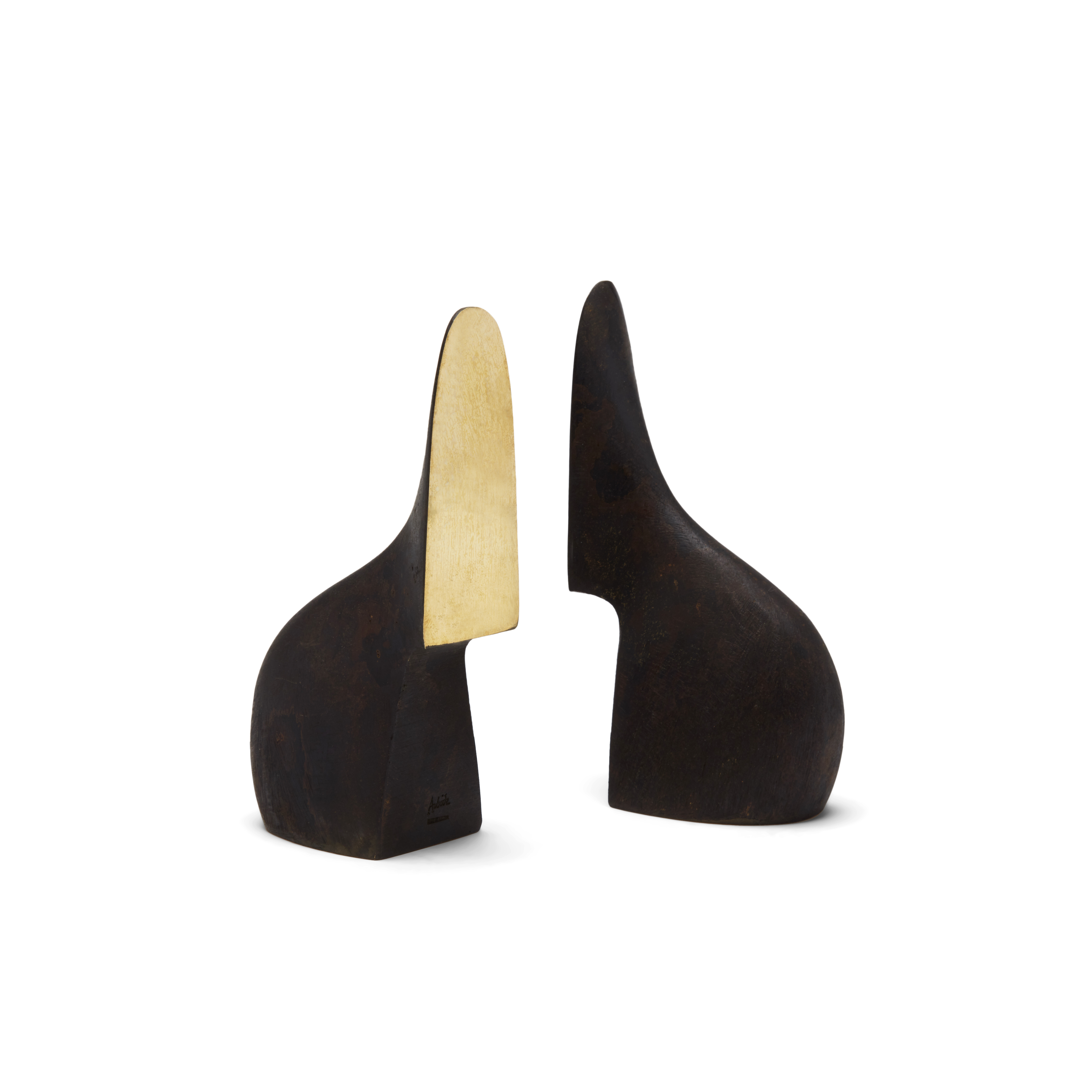 Sculptural solid brass bookends by Werkstätte Carl Auböck. This product is made to order. Production Lead Time: Approximately 3-4 Weeks. Lead time subject to change.