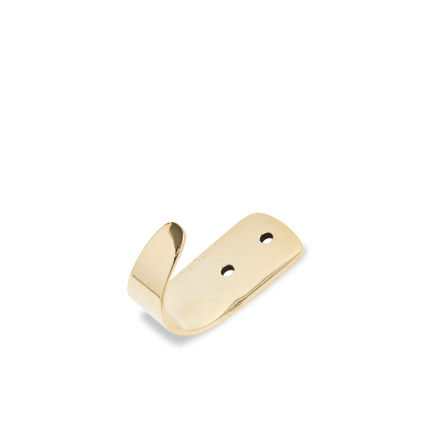 Small solid brass double-pronged hat hook in polished brass by Werkstätte Carl Auböck. This product is made to order. Production Lead Time: Approximately 3-4 Weeks. Lead time subject to change.