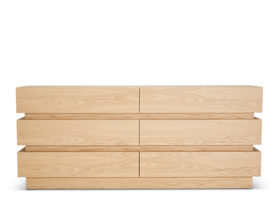 The Stacked Box Dresser features six drawers and is made in American walnut or white oak.