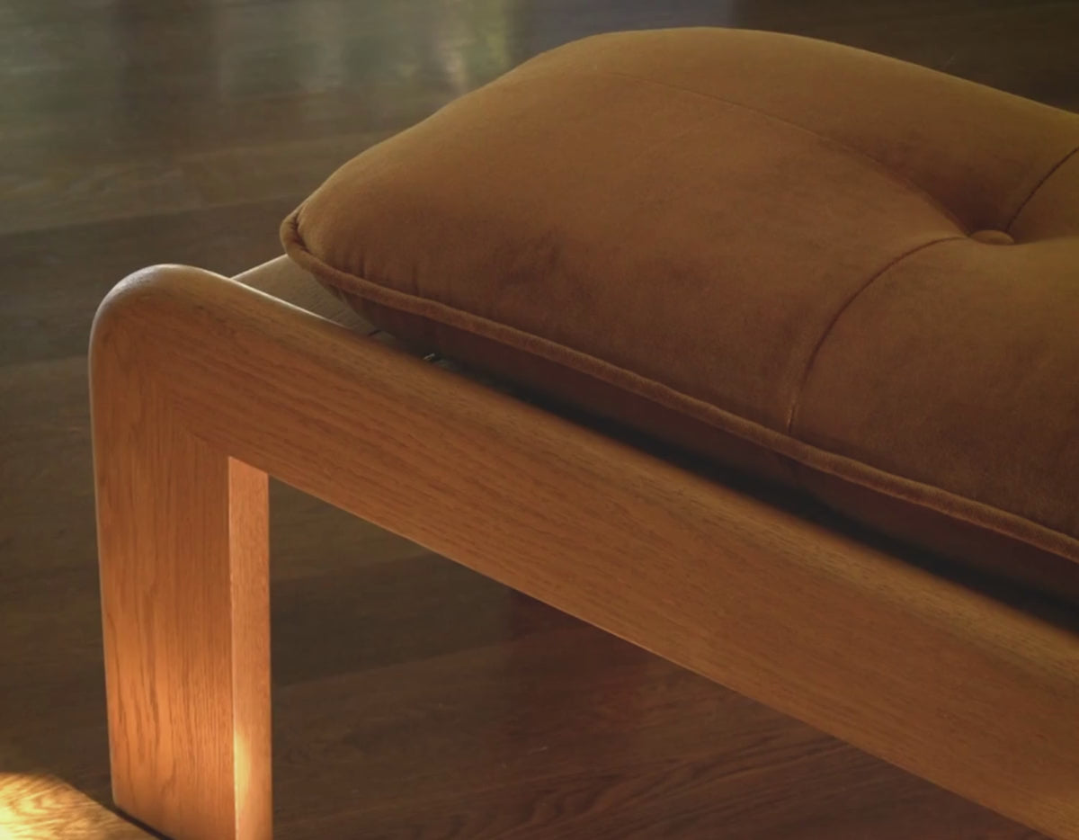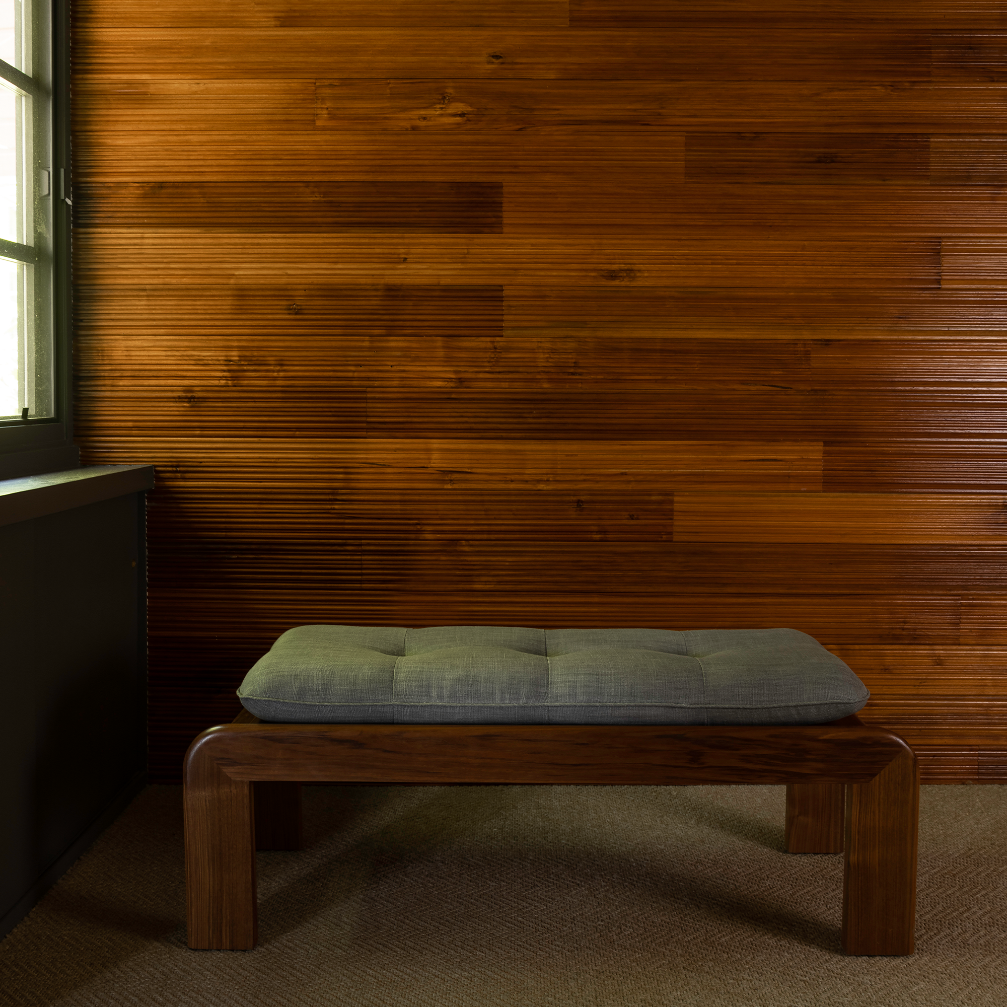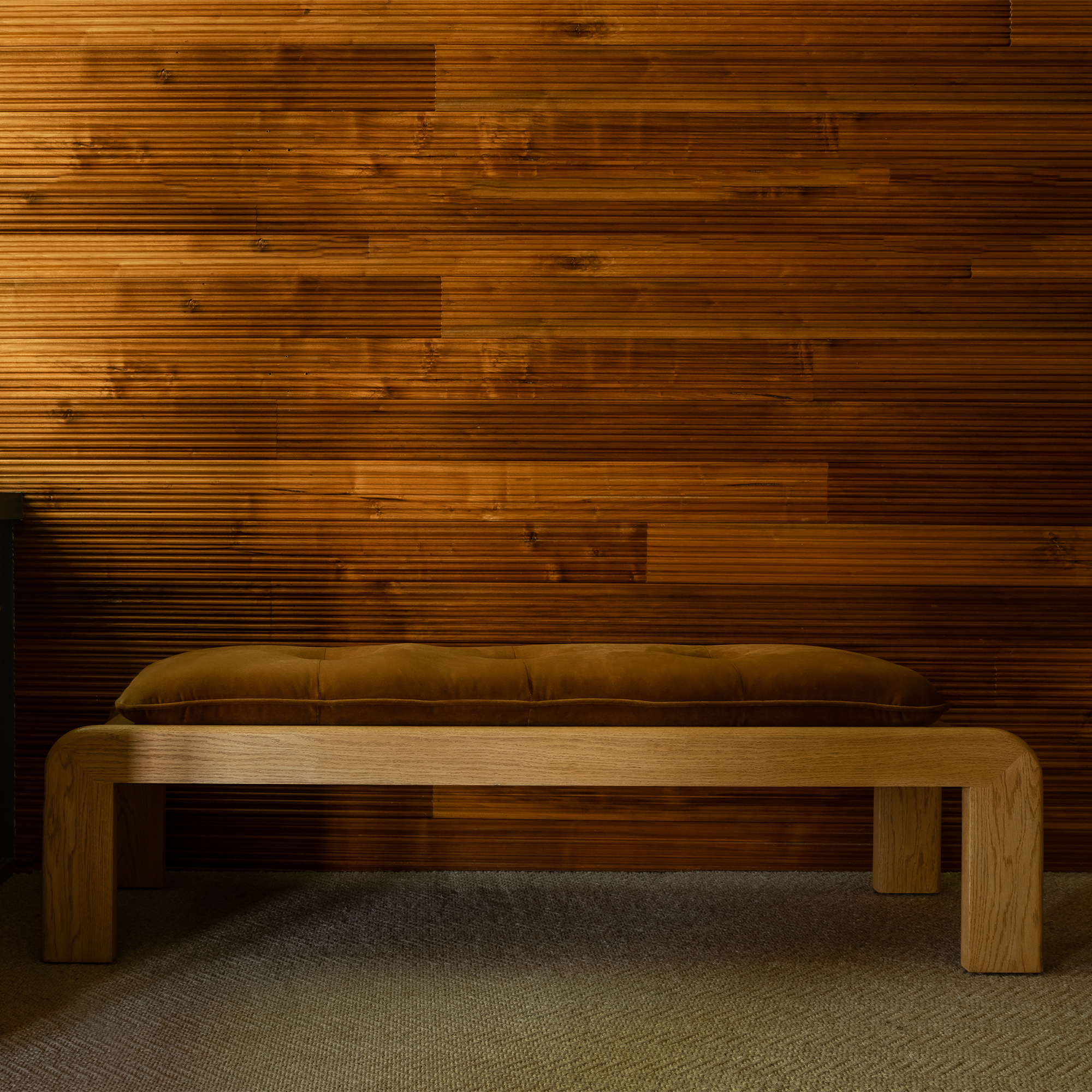 The Topa Bench features a handcrafted roundover frame and secured tufted cushion.