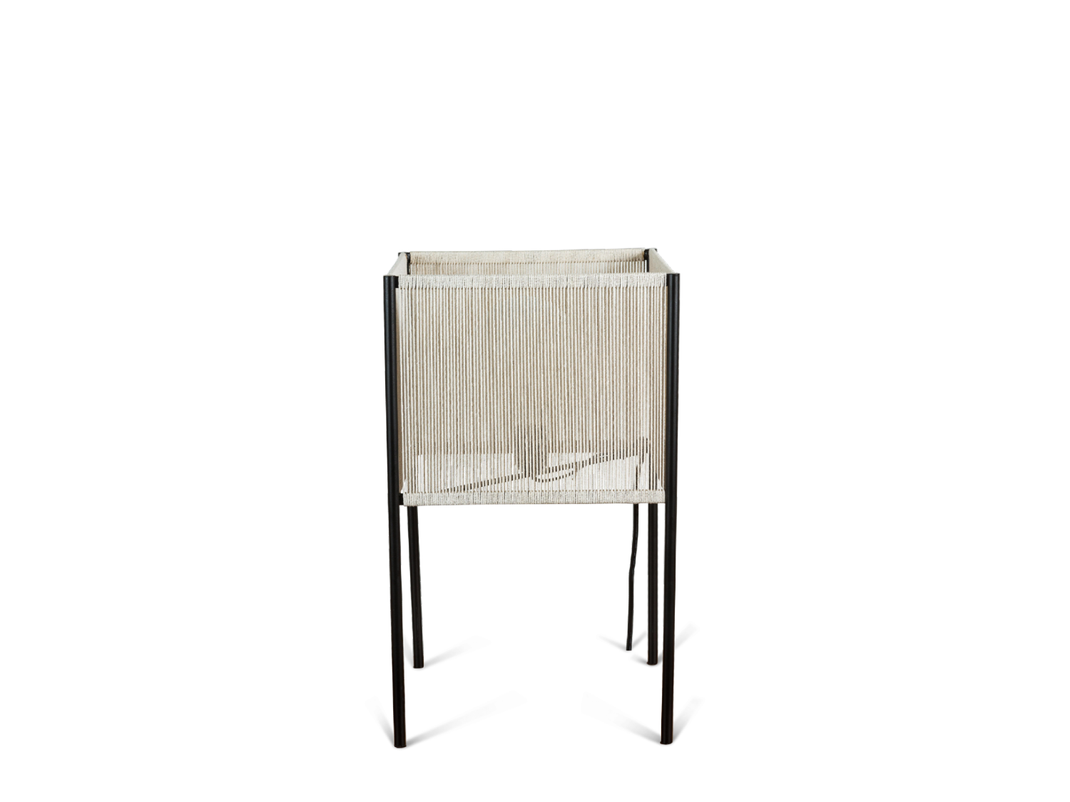 The Topanga Table Lamp features a white cotton rope shade and iron frame.
