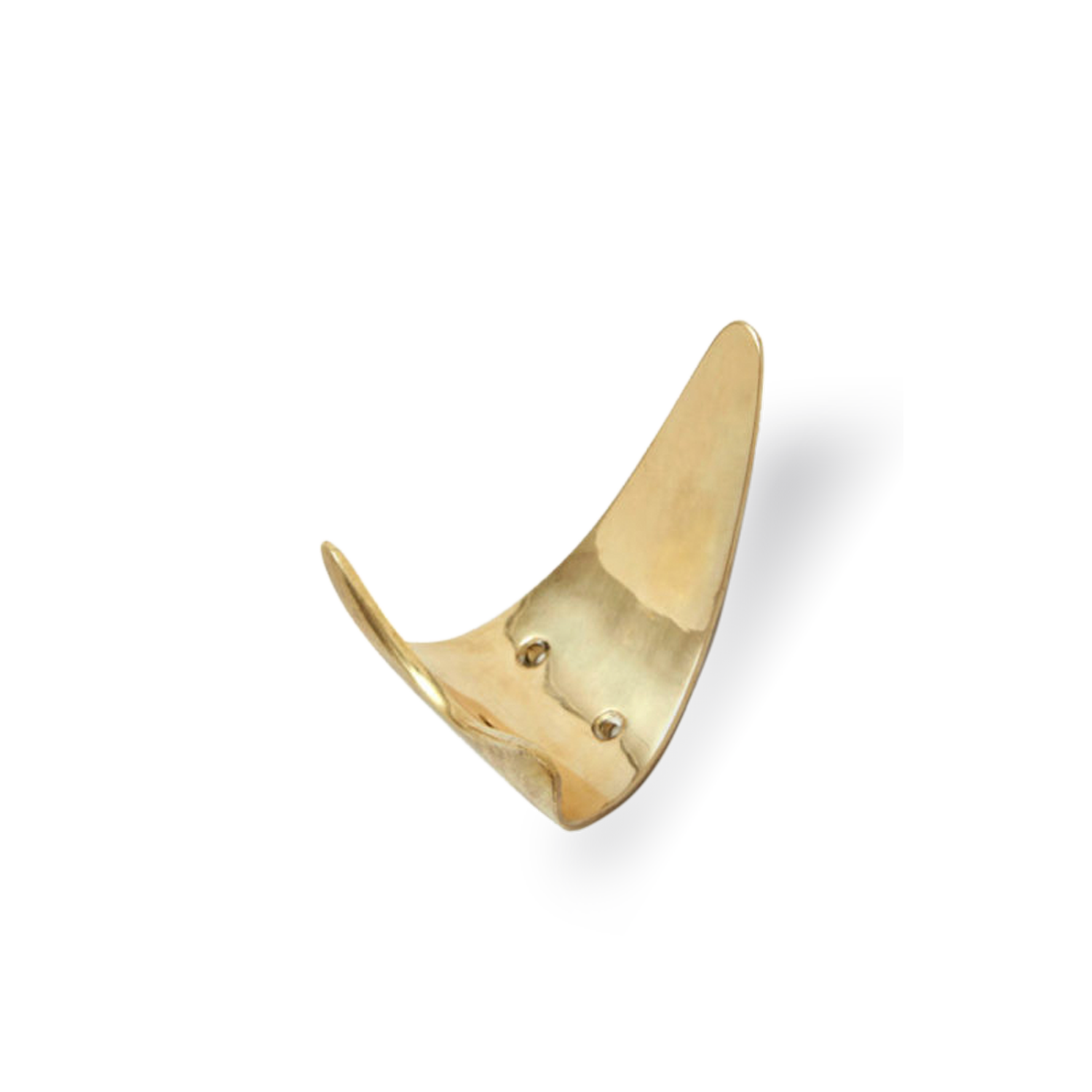 Small solid brass double-pronged hat hook in polished brass by Werkstätte Carl Auböck.