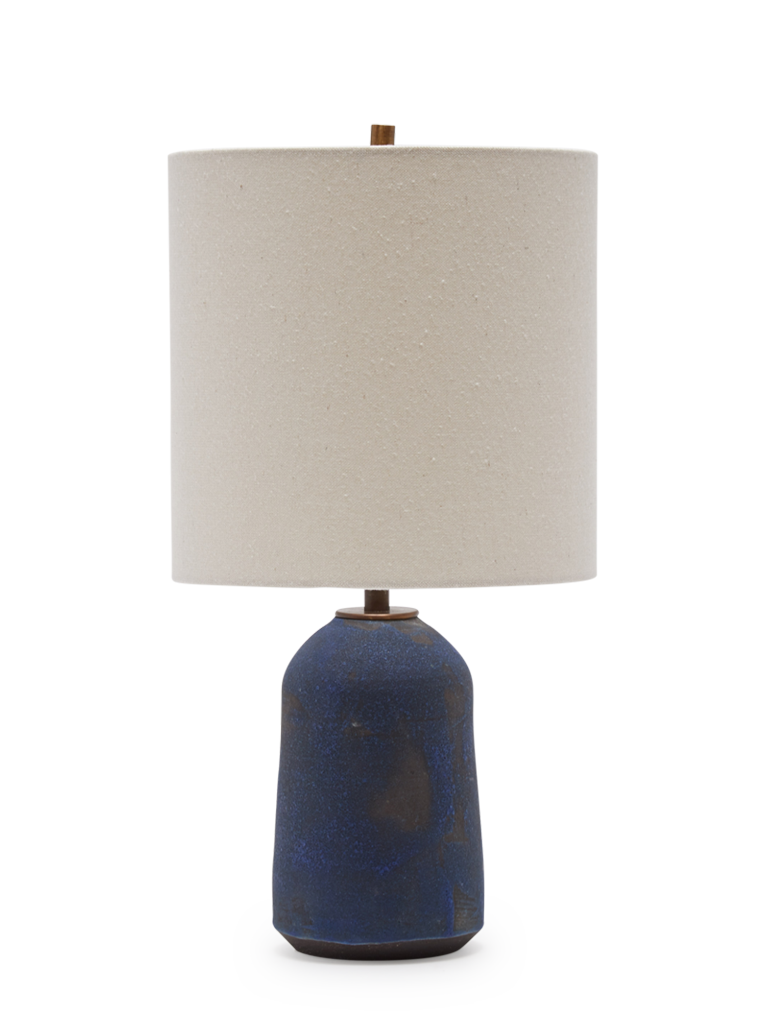 The Willow lamp features an elegantly tapered cylinder shape. Sized for a side table or accent light, this lamp is finished in a hand brushed cobalt blue glaze — a minimalist shape with maximum impact. Handmade from stoneware in California, and completed with an oatmeal linen shade with diffuser top and twisted brown cloth cord. This product is made to order. Approximately 10 - 12 weeks. Lead time subject to change